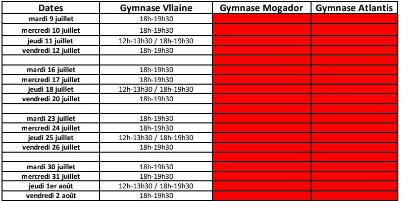 Pour une question d'assurance, ces créneaux sont uniquement ouverts à tous les adhérents du club.