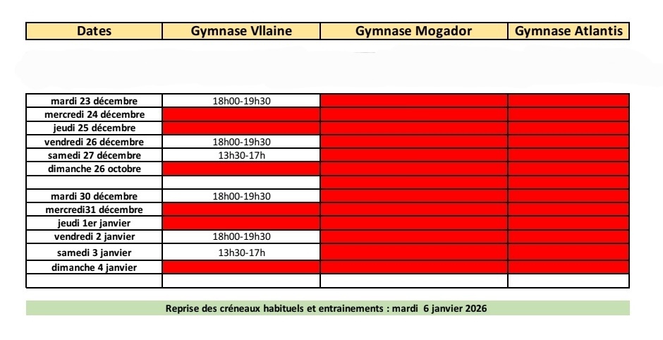 Créneaux réservés aux adhérents du club.