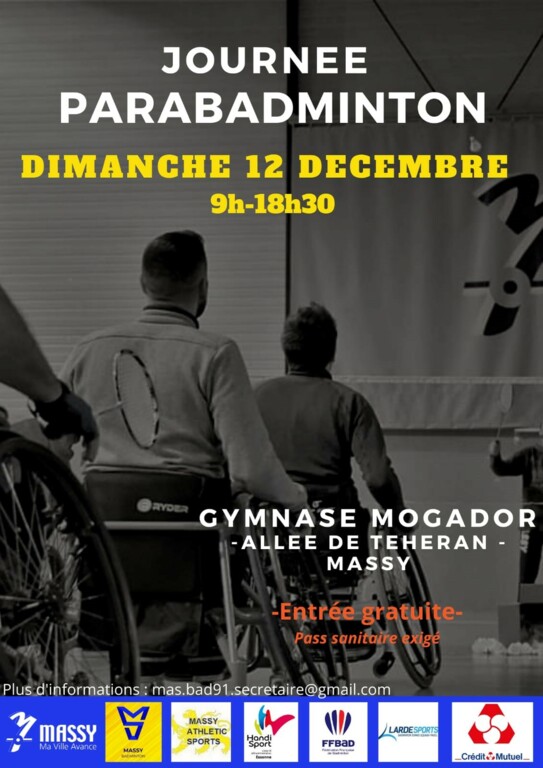 Journée ParaBadminton le 12/12/2021 : Gymnase Mogador de 9h à 19h