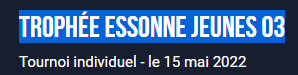 - le TEJ niveaux espoir et challenger sera organisé à Chilly Mazarin