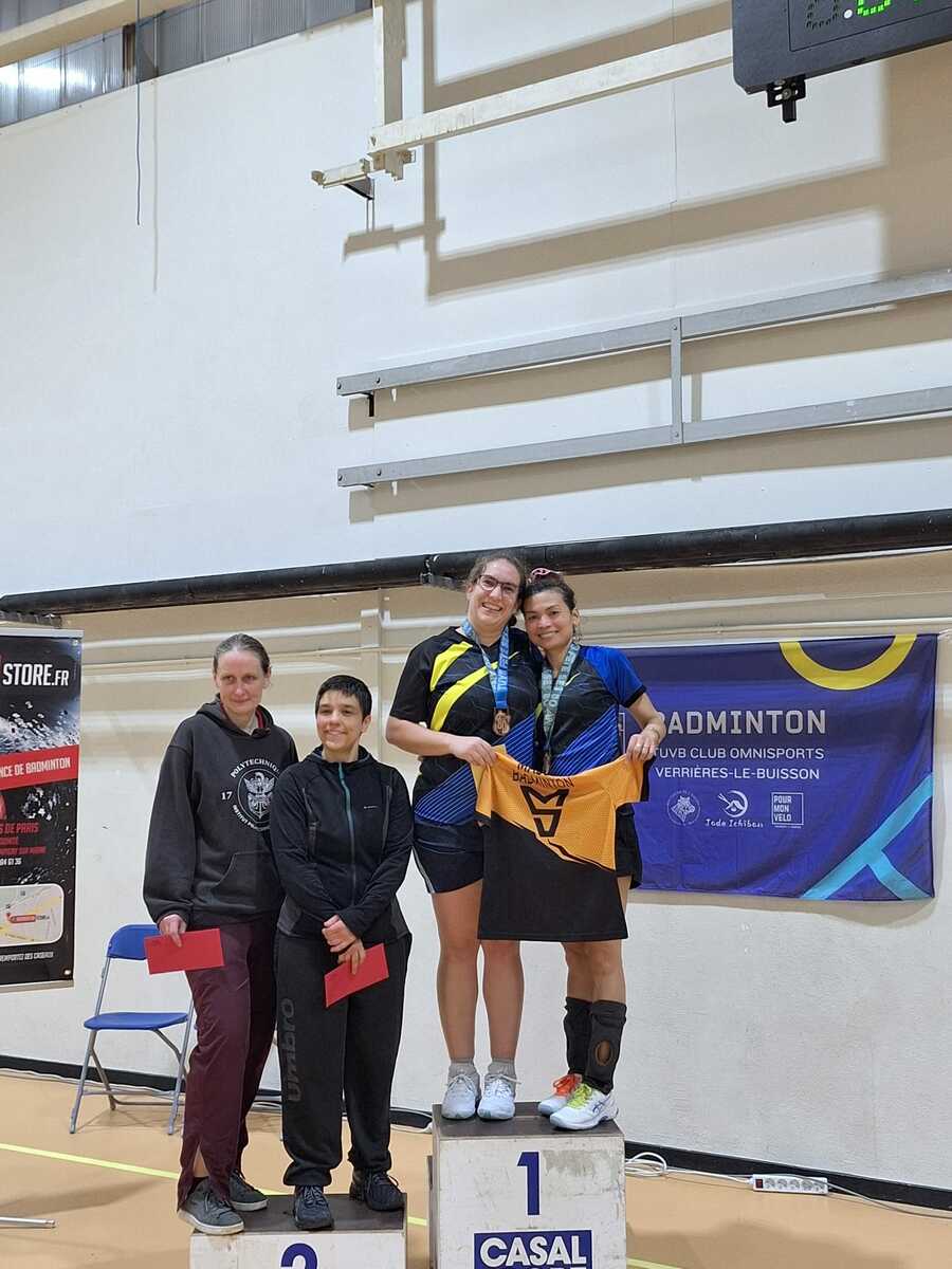 Tournoi Verrières 14-15/02/2026 : Victoire de Mathieu & Arnaud en DH, Victoire d'Aline & Xuyen en DD, Victoire de Anne & Mélissa en DD, Victoire de My-Linh & Arnaud en DMX, Finale de Soulivanh & Mélissa en DMX