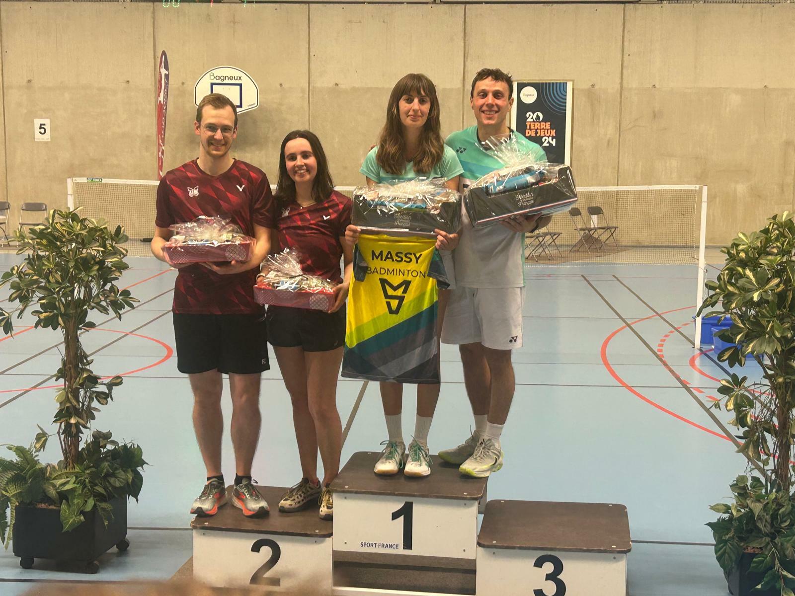 Tournoi 24-25/01/2026 Lonjumeau / Angers : Victoire de Marie et Paul en DMX, Finale de Aurore en SD, Victoire de Jeanne et Finale de Margot en SD, 3eme place de Aubin en DH championnat France